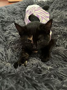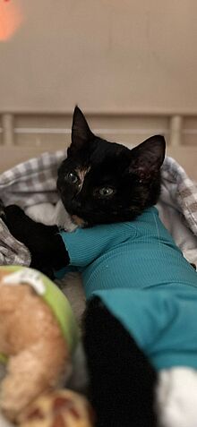 Vor Kurzem wurde eine junge Katze zu uns ins Tierheim gebracht. Sie wurde draußen gefunden – verängstigt, erschöpft und mit einem schweren Handicap: Ihre Hinterbeine kann sie momentan nicht bewegen und zieht sie beim Laufen hinter sich her.