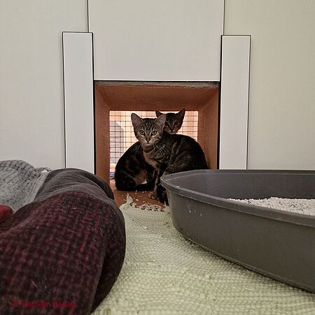 Mittlerweile lebt Adelita mit anderen Katzen auf einer Pflegestelle. Sie zeigt sich jetzt vermehrt und liegt schon einmal mit den anderen Katzen zusammen.