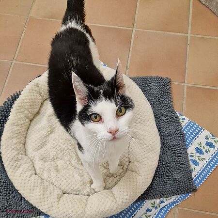 Moritz ist ein lieber, netter Kater, der gerne "redet" und sich auch gerne streicheln lässt. Mit Artgenossen kommt er gut zurecht. Da sein Schilddrüsenwert nicht in Ordnung ist, braucht er zweimal täglich ein Medikament, was er sich problemlos verabreichen lässt.