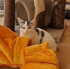 Fipsy ist auch eine ängstliche Katze, die sich nicht streicheln lässt und am Liebsten versteckt in ihrer Höhle sitzt. Leider hat sie Probleme mit den Ellbogen und benötigt Schmerzmittel.