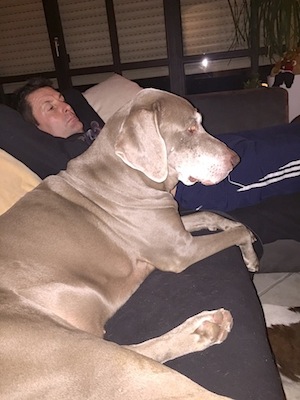 ich wollte euch gerne einmal berichten wie es mir nun nach 2 Jahren bei meinen Eltern geht:Am liebsten bin ich natürlich draußen im Freien und die ausgedehnten Spaziergänge bereiten mir am meisten Freude.Nach dem Spazieren gehen muss natürlich erst einmal mit der ganzen Familie auf der Couch gekuschelt werden.Ok ein bisschen Quatsch machen meine Eltern auch mit mir, aber das macht mir gar nichts, weil wir uns dann alle gemeinsam freuen.An schönen Tagen bekomme ich sogar mein Fressen draußen im Garten serviert. Mit vollem Bauch lässt es sich doch auch am besten schlafen entweder so oder……….. in meiner bevorzugten Schlafposition =)