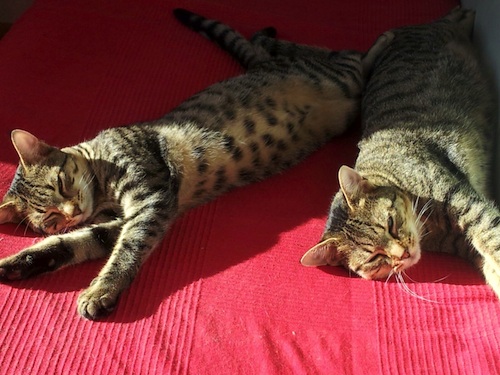 ich wollte Euch kurz mal über mein neues schönes zu Hause berichten. Ich habe mich hier wirklich schnell eingelebt und auch gleich mal die besten Plätze beschlagnahmt, z.B. auf der Fensterbank, Wäschetruhe oder auf dem Esszimmerstuhl, naja und so weiter. Herrlich. Wenn die Sonne scheint und es warm genug ist, geht's auf den großen Balkon. Aber nicht alleine. Ich habe auch noch einen Freund dazubekommen, den Peppi. Am Anfang habe ich gedacht, herrje, schläft der denn auch mal. Kinder. Nun ist aber ein wenig Zeit vergangen und wir sind ganz dicke Freunde geworden (und er schläft jetzt tatsächlich auch mal. Meine Erziehung!) Ich liebe unsere Kuschel- und Spielzeit. Da wird sich gegenseitig geputzt und dann mit Frauchen gespielt, geschmust und geschlummert. Wir sind nun zu einer kleinen Familie zusammen gewachsen.