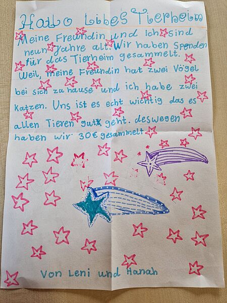 Leni und Hannah waren heute bei uns im Tierheim und haben uns 30 €, die sie gesammelt haben, übergeben.
