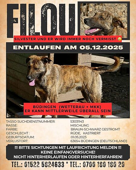Filou wird seit dem 05.12.2025 vermisst