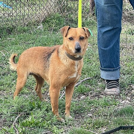 Der junge Rüde ist eine Mischung aus Cattle Dog-Magyar Vizsla-Deutsch Kurzhaar und ist im Oktober 2020 geboren.