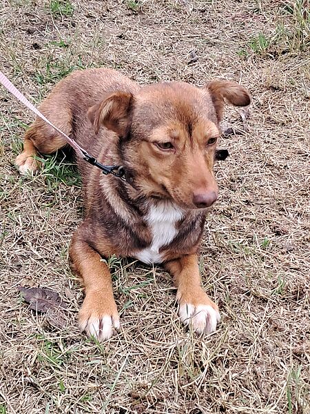 Sicher könnte sie zu einem größeren Rüden vermittelt werden, oder vorzugsweise auch als Einzelhund.