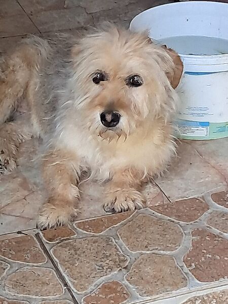 Malu ist die Tochter unserer Balia. Sie leben derzeit in einem Zwinger mit Prinz. Alle drei sind auf der Suche nach einem weichen Körbchen für ihre alten Knochen.