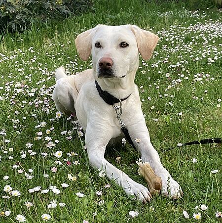 Er beherrscht alle Grundkommandos, kann stundenweise alleine bleiben und läuft gut an der Leine. Spaziergänge macht er generell sehr gerne.