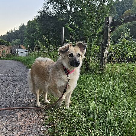 Sie läuft gut an der Leine, genießt Spaziergänge und beweist dabei, wie lernwillig und intelligent sie ist. Einmal verstandene Abläufe setzt sie zuverlässig um, denn sie möchte ihren Menschen gefallen.