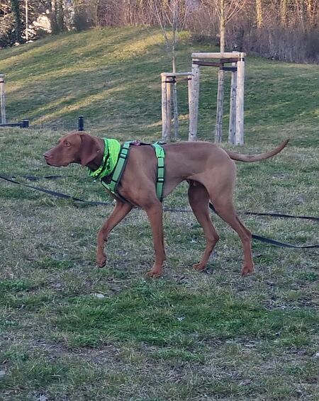 Booster ist ein 1,5 jähriger, intakter Viszla Rüde. Er kam als Junghund aus dem Auslandstierschutz zu einer Familie nach Deutschland, die ihn sehr liebt. Leider entwickelte sich Booster in eine für die Familie nicht tragbare Richtung. So war er einerseits der freundliche, lustige lauf-und apportierfreudige Junghund und anderseits akzeptierte er keinerlei Grenzen. Er verfolgte seine Menschen den ganzen Tag und kam nur zur Ruhe, wenn seine Menschen ruhten. Booster flog seinen Menschen regelmäßig um die Ohren bei absolut alltäglichen Dingen wie Zecken ziehen. Er konnte nicht mehr aus dem Napf gefüttert werden, weil er diesen sofort verteidigte. Es kam zu mehreren Beißvorfällen.