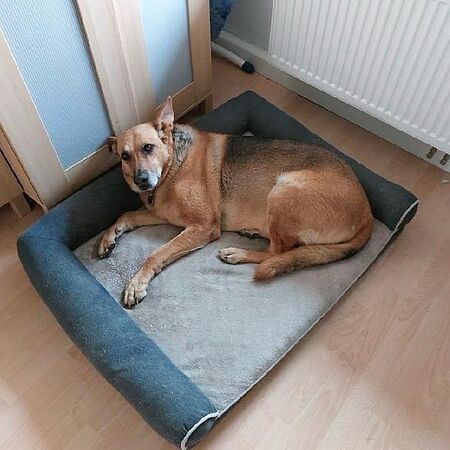 Er ist ein kluger und aufmerksamer Hund, absolut stubenrein, schläft nachts und kann gut alleine bleiben, bis man nach 6 Stunden von der Arbeit wieder nach Hause kommt.