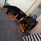 Leider kann er nicht allein bleiben. Rocky ist bis heute noch nicht ganz stubenrein, seine aktuelle Zeit liegt bei alle 5 Stunden Gassi gehen tagsüber/nachts hält er durch.