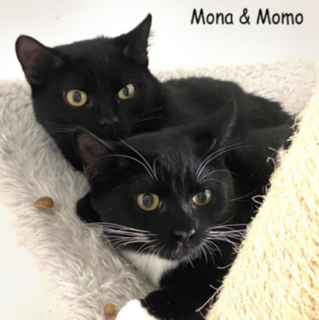 Die zwei netten Kätzchen Momo und Mona möchten gerne zusammen bleiben und sich weiterhin gegenseitig putzen und miteinander spielen. Die schwarz-weiße Momo braucht die Nähe ihrer Schwester Mona. Das Highlight des Tages ist das Bürsten - beide lieben es!