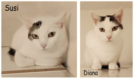 Die hübschen Schwestern Susi und Diana verstehen sich gut und spielen gerne gemeinsam. Diana spielt und schmust gerne mit ihren Menschen, sie genießt Streicheleinheiten. Susi ist noch zurückhaltend. Die beiden suchen einen ruhigen Bereich zum Eingewöhnen und Ankommen und Platz zum Spielen und sorglos Herumtollen.