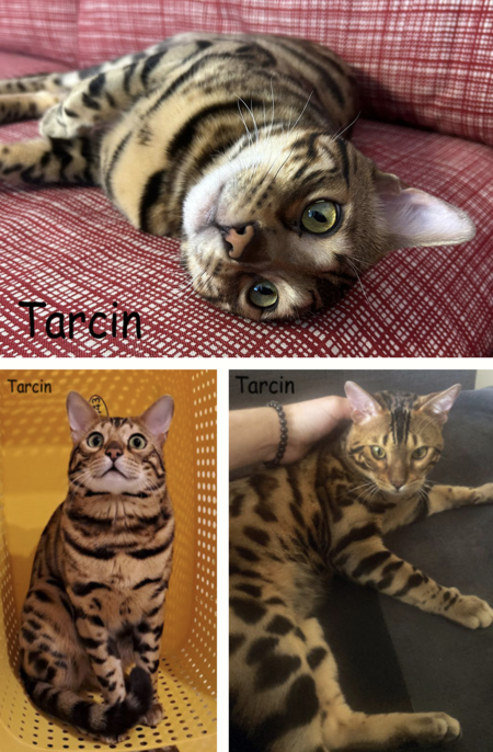 Tarcin ist ein wunderschöner Bengale, verspielt und freundlich zu Menschen. Rassetypisch, aber auch weil er noch sehr jung ist, hat er viel Energie und liebt es sich zu bewegen, zu klettern und zu springen. Tarcin lebt momentan in einer beengten Wohnung. Wir suchen für ihn Halter, die seiner Rasse gerecht werden können. Es muss eine große Wohnung und die Möglichkeit zu Freigang bestehen. Und es sollte genug Zeit geben um sich mit Tarcin zu beschäftigen. Vielleicht findet sich sogar jemand der bereits einen Bengalen hält und Tarcin die Chance geben kann mit einem Spielgefährten zu leben.