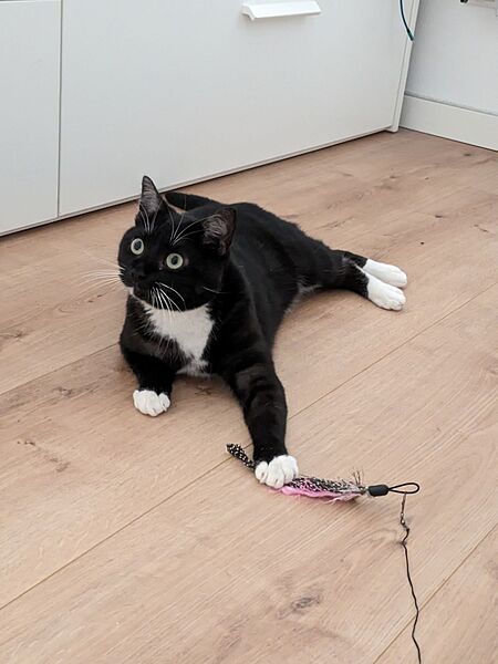 Wir haben viel Spaß mit ihm da er ein kleiner Frechdachs ist, er fegt durch die Wohnung als wäre er schon immer hier gewesen. Ich bin sehr froh, dass er alles so gut angenommen hat.
