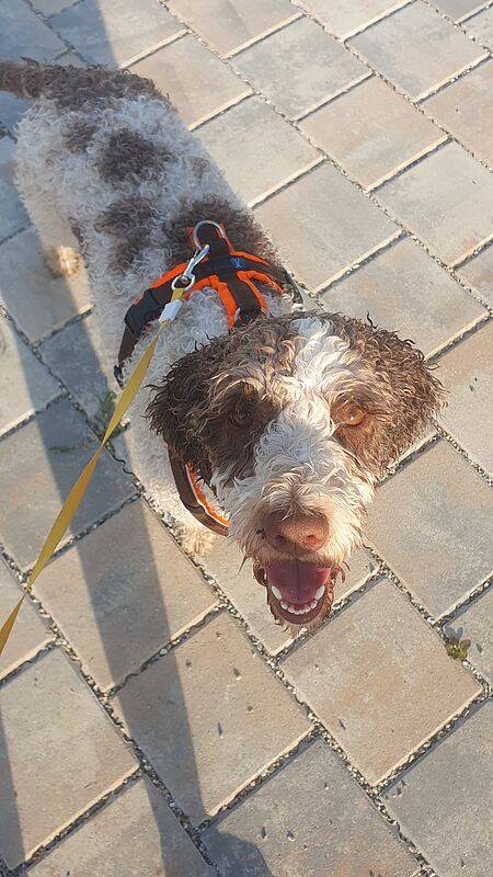 Das er am Anfang seiner Zeit bei uns dreimal abgehauen ist und wir ihn wieder einfangen mussten, was immer innerhalb kürzester Zeit gelang, trug auch nicht gerade zur Entspannung bei. Das erste Mal ist er mir durch einen schmalen Spalt beim Öffnen der Haustür entwischt. Ein weiteres Mal beim Schließen des Kofferraums und beim dritten Mal wieder durch die sich öffnende Haustür. Zum Glück besteht diese Gefahr jetzt nicht mehr. Mittlerweile ist es für ihn ganz klar, wo er hingehört. Damit möchte ich nicht sagen, dass er nicht bei sich bietender Gelegenheit abhauen würde, wenn er im Freien ohne Leine geführt würde. Da genügt der kleinste Reiz und Chico geht in den Jagdmodus über. Ihn dann noch kontrollieren zu können bedarf es einiger Erfahrung. Ohne Leine wäre das undenkbar.