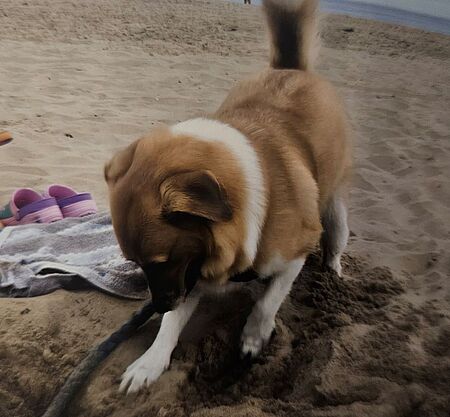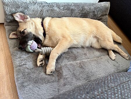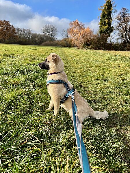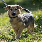 Ari hat sich problemlos eingelebt, ganz viel Unfug im Kopf und ist unsere Wilde. Stubenrein war sie ganz schnell, hat schon Hundefreunde gefunden (liebt eher die Jungs), tobt im Garten und auf der Hundewiese, fährt gerne Auto, pöbelt ein bisschen an der Leine und ist wirklich ein Herzchen.